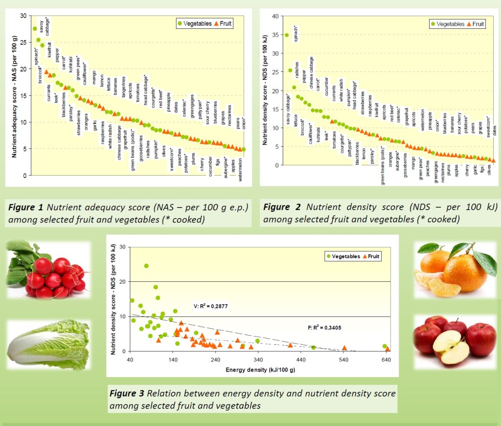Aún así si queremos la mayor densidad nutricional posible, los mejores alimentos son sin duda las verduras. Muchísimo mas que la fruta y creo que no deberían estar al mismo nivel como muestra este estudio, donde podemos ver que las mayoría de las verduras tienen al menos 2 o 3 veces mayor densidad que cualquier tipo de fruta.