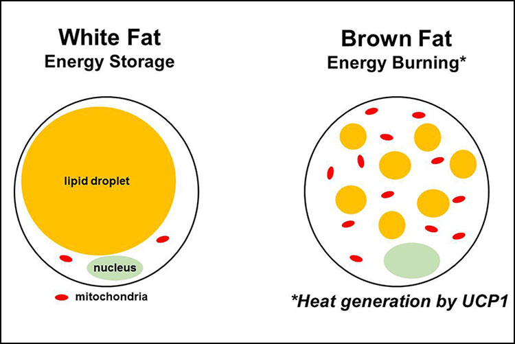 La gran diferencia entre ellos es su composición. Los adipocitos blancos tienen aproximadamente un 95% de grasa y se utilizan simplemente como depósito energético y los adipocitos marrones (existentes en casi todos los mamíferos) contienen gran cantidad de mitocondrias y su función es producir calor en respuesta a temperaturas frías.