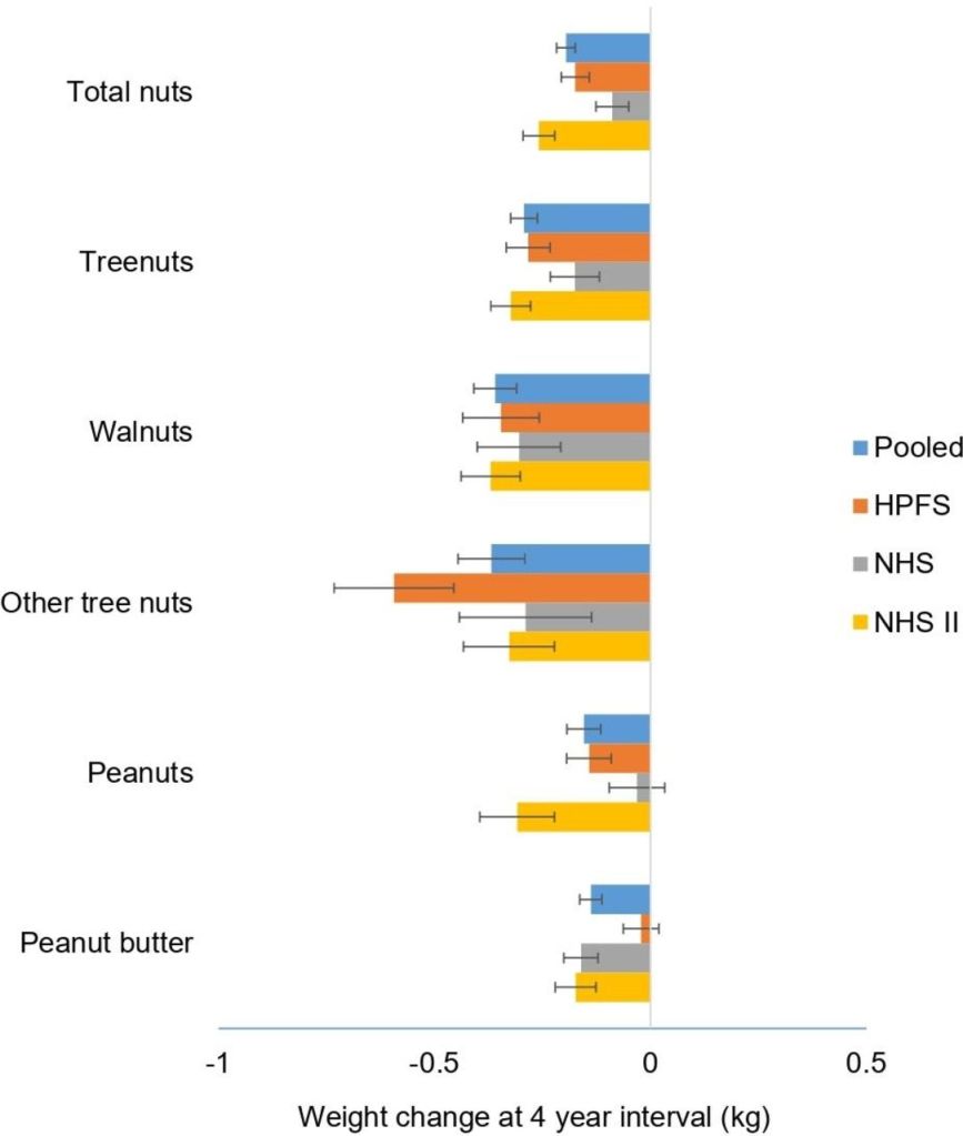 Incluso en un reciente estudio realizado sobre 373.293 sujetos durante 5 años se pudo comprobar que los consumidores habituales de frutos secos (en este caso nueces) tenían 2,1 kg menos de incremento de peso que los no consumidores, disminuyendo su riesgo de obesidad un 5%. Por lo que parece que a largo plazo los frutos secos no hacen que aumentemos de peso, sino todo lo contrario.