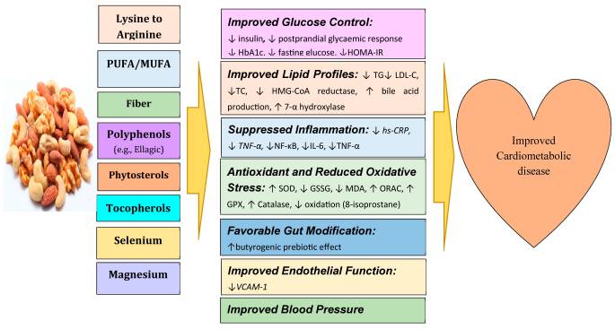 Según Joan Sabate en una dieta mediterránea el mejor fruto seco son las nueces al ser rico en ácidos grasos poli-insaturados y la gran cantidad de Omega 3. Sin embargo, en dietas anglosajonas con utilización de aceite de maíz son más recomendables los pistachos, almendras y avellanas con ácidos mono-insaturados.