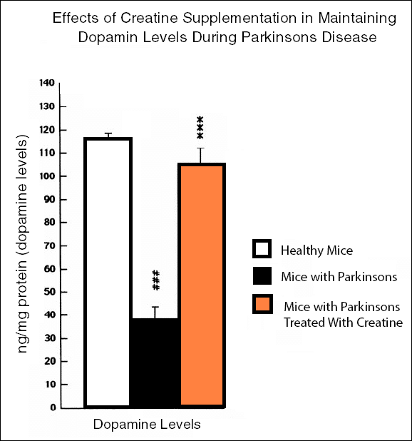 - Efecto neuroprotector: Aunque todavía es necesaria investigación parece que la creatina esta relacionada con mecanismos neuroprotectores y tiene propiedades antioxidantes (estudio). Estos efectos son prometedores en trastornos asociados al envejecimiento cerebral especialmente en la enfermedad de Parkinson y la enfermedad de Huntington. También podría ser beneficiosa lesiones cerebrales traumáticas (estudio, estudio). Incluso esta capacidad para aportar más energía al cerebro parece tener un efecto secundario muy positivo que es disminuir el riesgo de sufrir depresión, según este estudio de hasta un 31%.