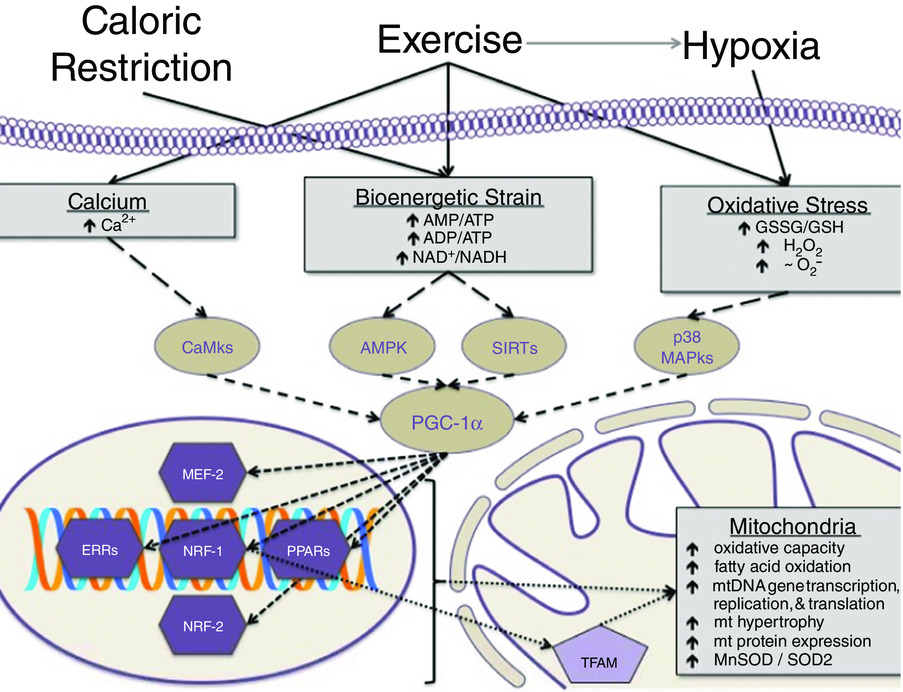 En esta investigación se pudo determinar que básicamente hay tres opciones para favorecer la biogénesis mitocondrial del músculo esquelético: restricción calórica, ejercicio y condiciones de hipoxia.