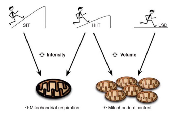 Uno de los grandes objetivos del entrenamiento es tratar de conseguir un aumento de la densidad mitocondrial, ya que varias investigaciones utilizando biopsias musculares la han relacionado el VO2max desde hace muchos años (estudio, estudio).