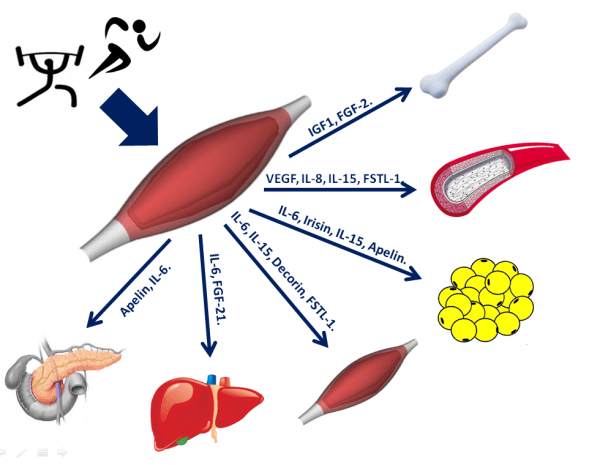 En los últimos 15 años el musculo esquelético ha dejado de ser visto únicamente como un tejido que produce movimiento. Las últimas investigaciones han demostrado que se trata de un órgano endocrino altamente activo y productor de múltiples hormonas mediante el ejercicio, con acción endocrina y paracrina denominadas mioquinas.